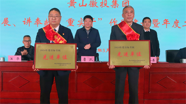 3月12日下午,黄山徽投集团“比发展、讲奉献、重实干”作风建设暨年度工作会议在歙县举行。深入学习贯彻习近平新时代中国特色社会主义思想和党的二十大、二十届二中、三中全会精神,认真落实习近平总书记考察安徽重要讲话精神、市县“比发展、讲奉献、重实干”作风建设大会精神,全面总结2024年工作成绩,明确2025年集团发展主要预期目标,安排部署2025年重点工作任务。