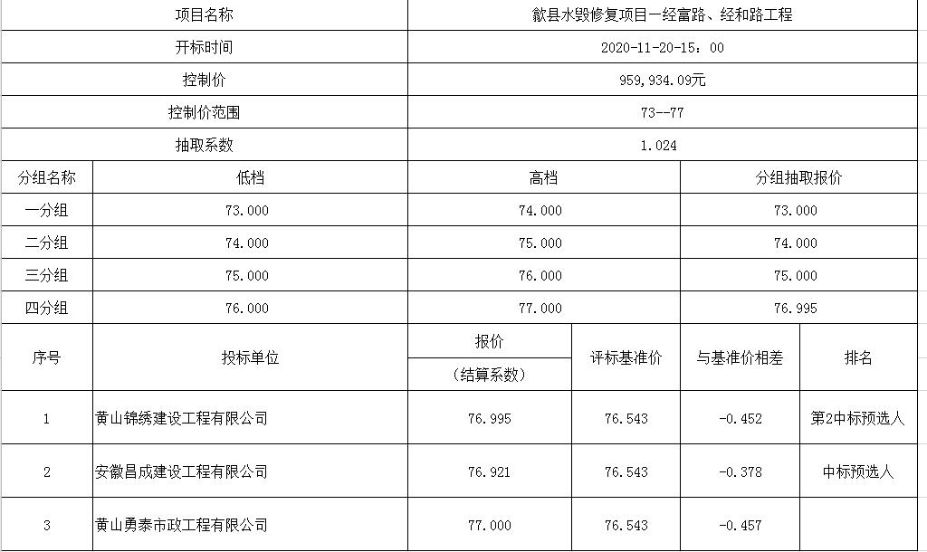 歙县水毁修复项目—经富路、经和路工程 小型项目第一阶段比选公示