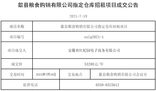歙县粮食购销有限公司指定仓库招租项目成交公告