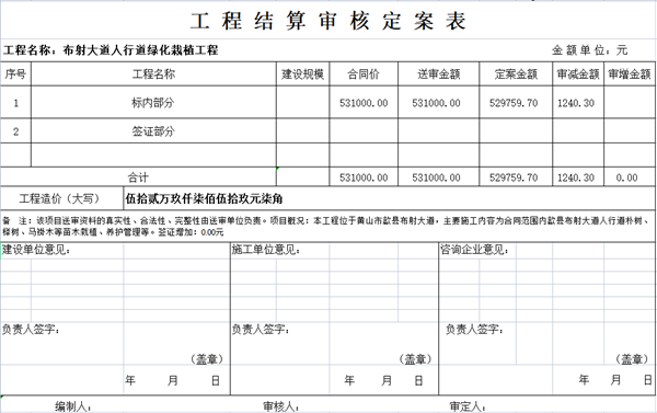 布射大道人行道绿化栽植工程结算审核定案公示