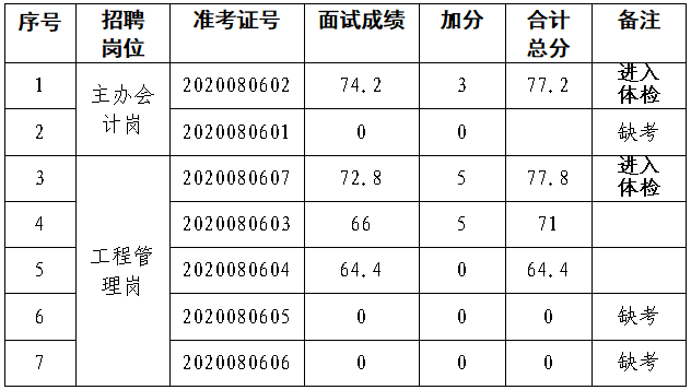 根据《开云app登录入口招聘考试公告》,面试工作已于2020年8月8日结束,现将考生的成绩予以公告:
