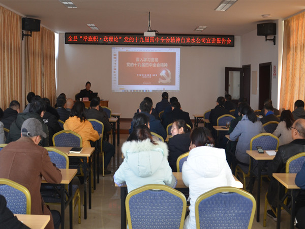 12月16日,按照中共歙县县委办公室的安排,全县“举旗帜·送理论”党的十九届四中全会精神宣讲活动走进歙县自来水有限公司,公司员工90余人聆听了报告。