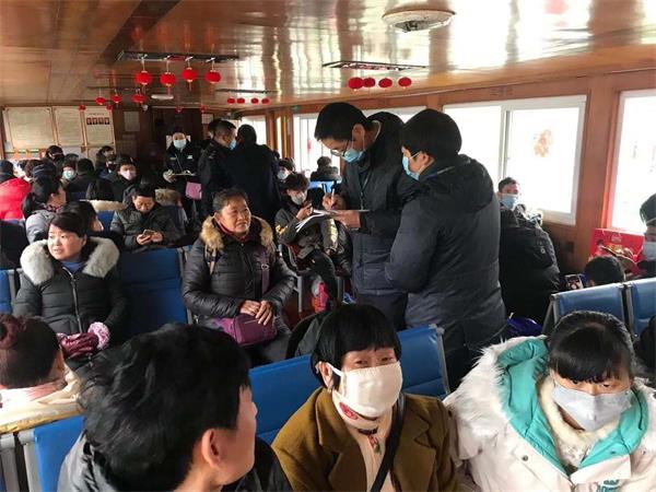 从空旷景区码头到人员流动密集的公交船上,到处都是公司领导们忙碌的身影。在这几天里,他们夜以继日、通宵达旦,积极处理各种突发事件。他们知道,必须态度坚决,群防群治,才能打赢这场疫情防控阻击战。派发口罩给员工和旅客测量体温、到一线慰问工作人员,他们纷纷尽自己的一份责任!